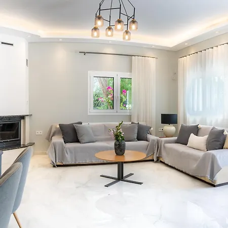 El corazón de Perama se encuentra a 5 minutos a pie de la casa de vacaciones, y lugares de interés cultural como el Palacio de Mon Repos está a 10 minutos en coche. Esta villa está a 6 km del Museo Bizantino de Antivuniotisa y a a 500 metros de la Isla Pontikonisi.